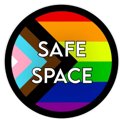 I love the concept of the Safe Space. I have buttons and pins that have the words “Safe Space” superimposed on the Progress Pride flag. I put them on my backpack that goes everywhere with me. I have small signs with the same image that I put up at my events. I am getting one for my car.You may have seen them as well. But what do they mean? Safe Spaces are created to be welcoming areas for people who are often marginalized or targeted because they are perceived as being “other”. They are environments where people can be accepted without criticism, discrimination or judgement. These spaces are secure and supportive, allowing for authentic expression of gender identity and sexual orientation. These spaces offer active listening, confidentiality and inclusive language. There are many items available with the Safe Space logo and I love them. The Progress Pride flag and the words SAFE SPACE will perfectly illustrate who is welcome and it is perfect. For the record: