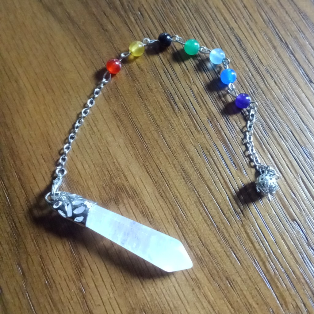 Hold the pendulum in front of you and allow it to swing in a clockwise motion. Then swing the pendulum gently back and forth to become familiar with the movement. Allow the pendulum to swing in different directions. Deliberately swing the pendulum in gentle circles. When the pendulum is still, ask it which movement indicates a “Yes” or ‘positive’ response. It may take time for the pendulum to move. Be patient. Then ask it to indicate a “No” or ‘negative’ response. Many people use the pendulum to help locate lost objects, determine a best course of action or to answer “yes or no” questions. There are helpful pendulum charts, cloths and boards, but these are not necessary for the pendulum to work. Preferred pendulums are made of wood or from crystals and stones. Some believe pendulums made of conductor materials like silver, copper or brass should not be used. Those made of quartz crystal seem to be most effective, as this stone is easily “programmed” with intention and stores magical energy quite well. My own pendulum is made of a quartz that seems to glow in the light, and I am always astounded by it’s accuracy. When you find a pendulum you like, it is important that you do not treat it as a trivial object. Regard it as a sacred, divine tool. When not using it, keep it in a pouch made of natural fiber, and do not allow anyone else to touch or use it. Your pendulum will attune to your energy, so you must keep it safe and away from the hands of others.